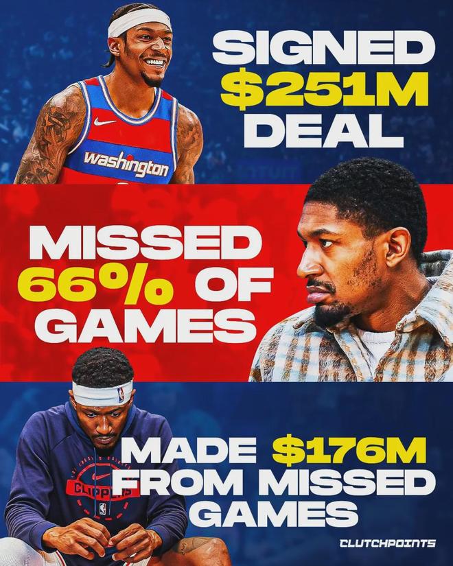 快船阵中不止比尔一个伤员,伦纳德目前也在养伤,本赛季同样只打了6场比赛。快船还没起飞,已经沉了。自从2022年夏天签下5年2.51亿美元的超级顶薪,比尔缺席了66%的比赛。同期伦纳德缺席了36%,恩比德缺席了49%。