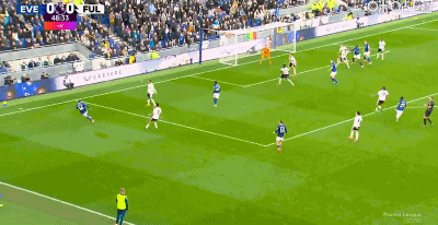 第45+4分钟,这次有了,盖伊跟进打门得分,埃弗顿1-0领先