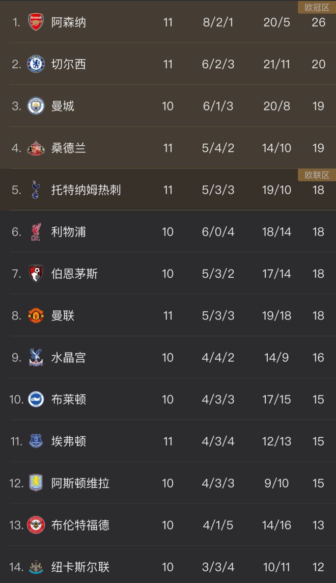 英超一夜变天!枪手翻车仍6分领跑 蓝军升第2 黑马进前4+曼联第8